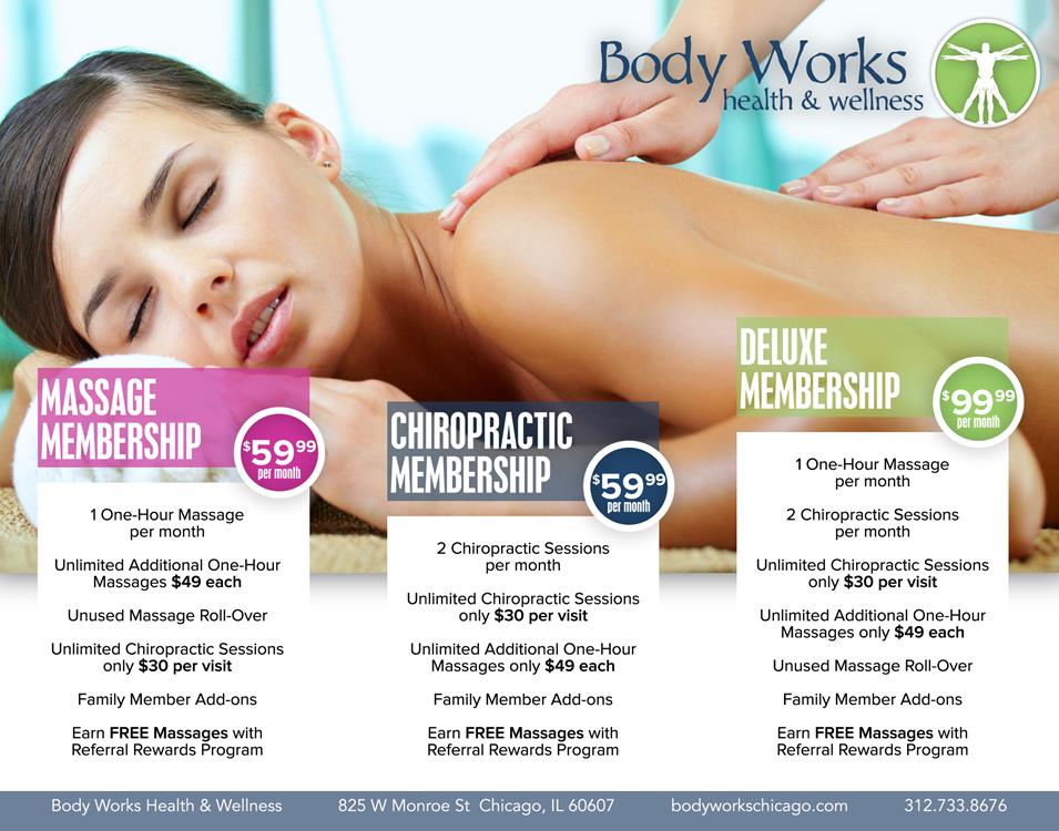 Call us today at (312) 733-8676 to learn more about Wellness Care Memberships from Body Works Health Wellness.
